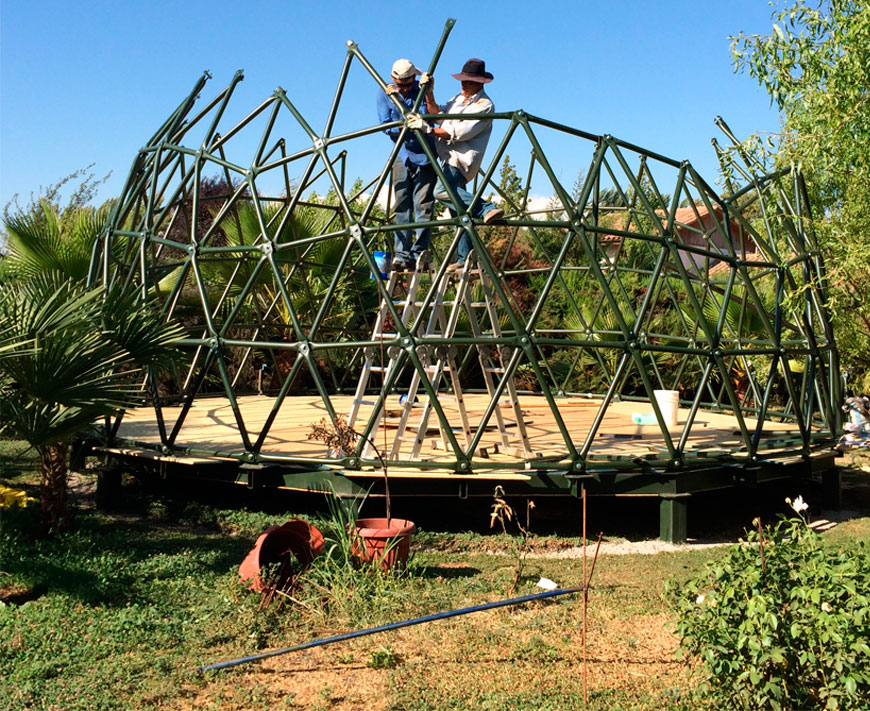 Domo Geodésico basado en los principios desarrollados por Richard Buckminster Fuller. Esta construido de secciones tubulares de acero y apernadas fuertemente entre ellas.